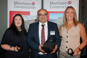 (from left) Bethany Greig, apprentice administrator; Keith Brown, cabinet secretary for economy, jobs and fair work; Andy Mallice, managing director, Robertson Construction Scotland and Jack Goodfellow, apprentice business support administrator Robertson Group welcomed the cabinet secretary for econ